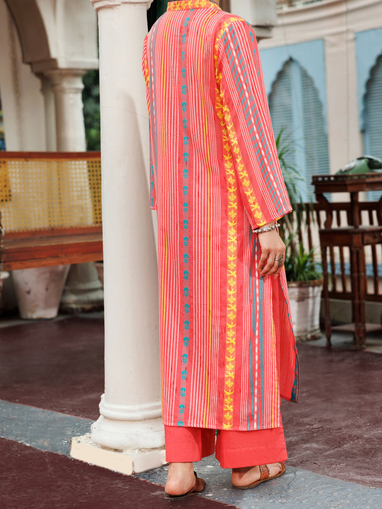Yarn Dyed Long Shirt With Metal Brooch Detail On Neckline.