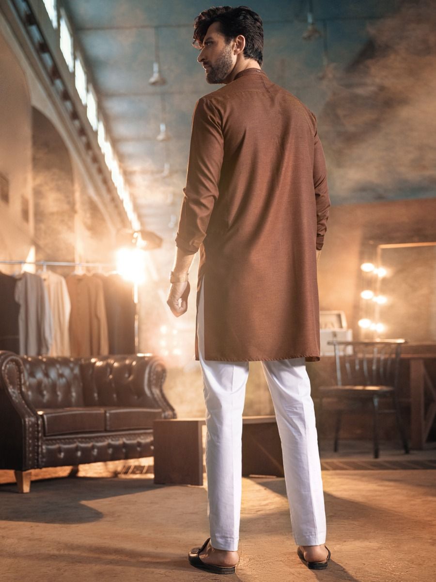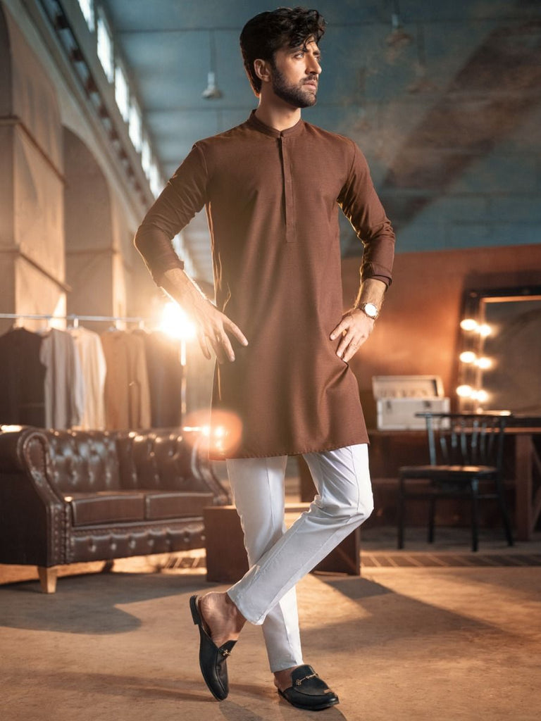 Textured Cut And Sew Kurta With Invisible Placket