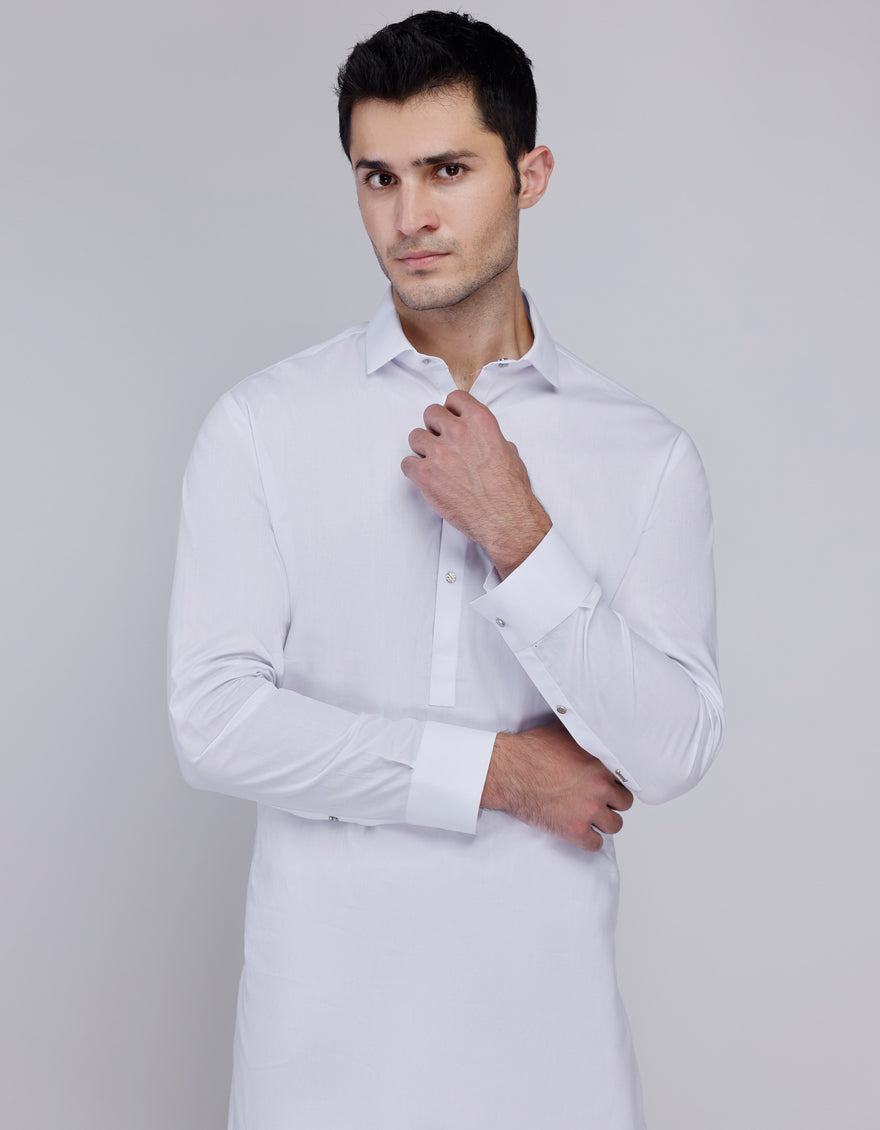 This basic men's White Cotton Casual Kameez Shalwar epitomizes effortless sophistication and classic charm, making it a wardrobe staple for various cultural and casual events.