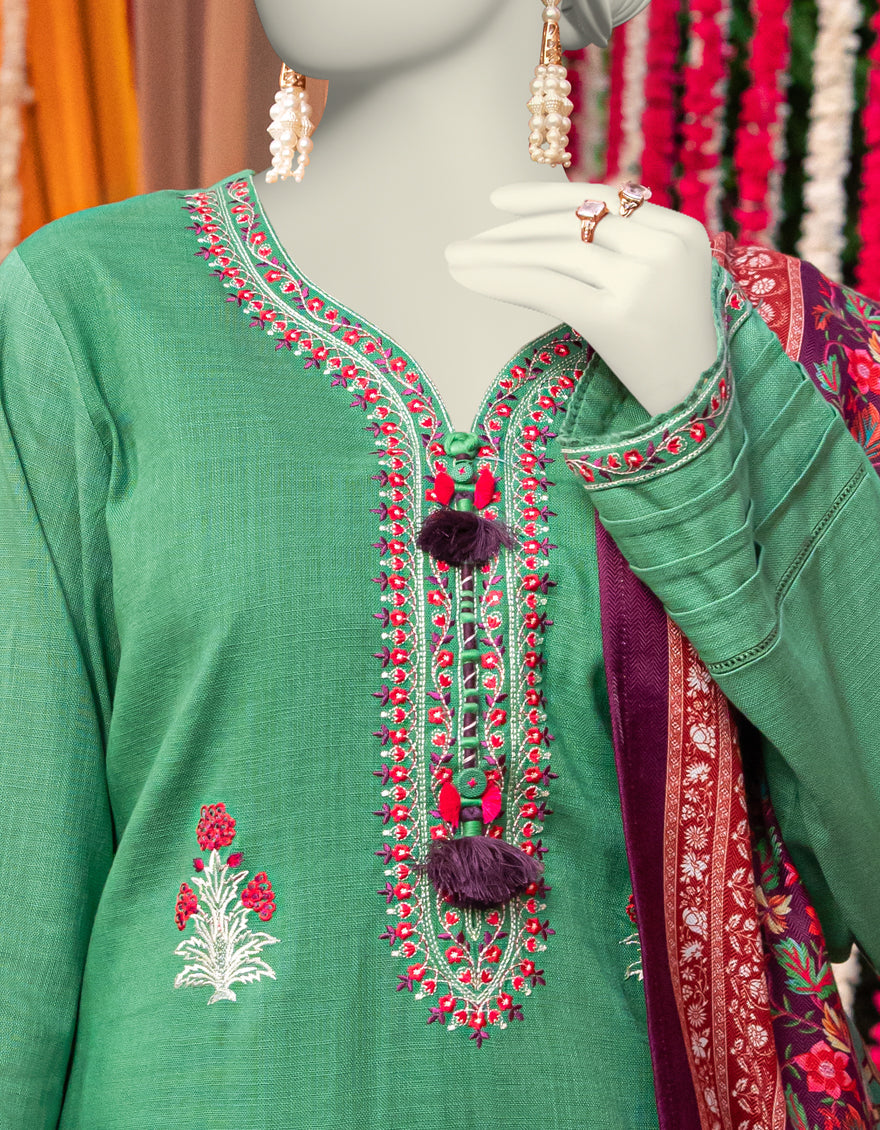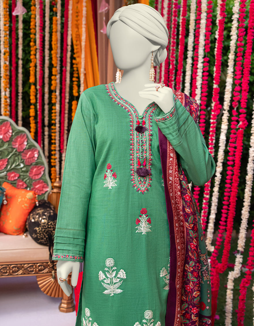 Collection: Embroidered Dobby Shirt And Digital Printed Shawl With Cambric Trouser