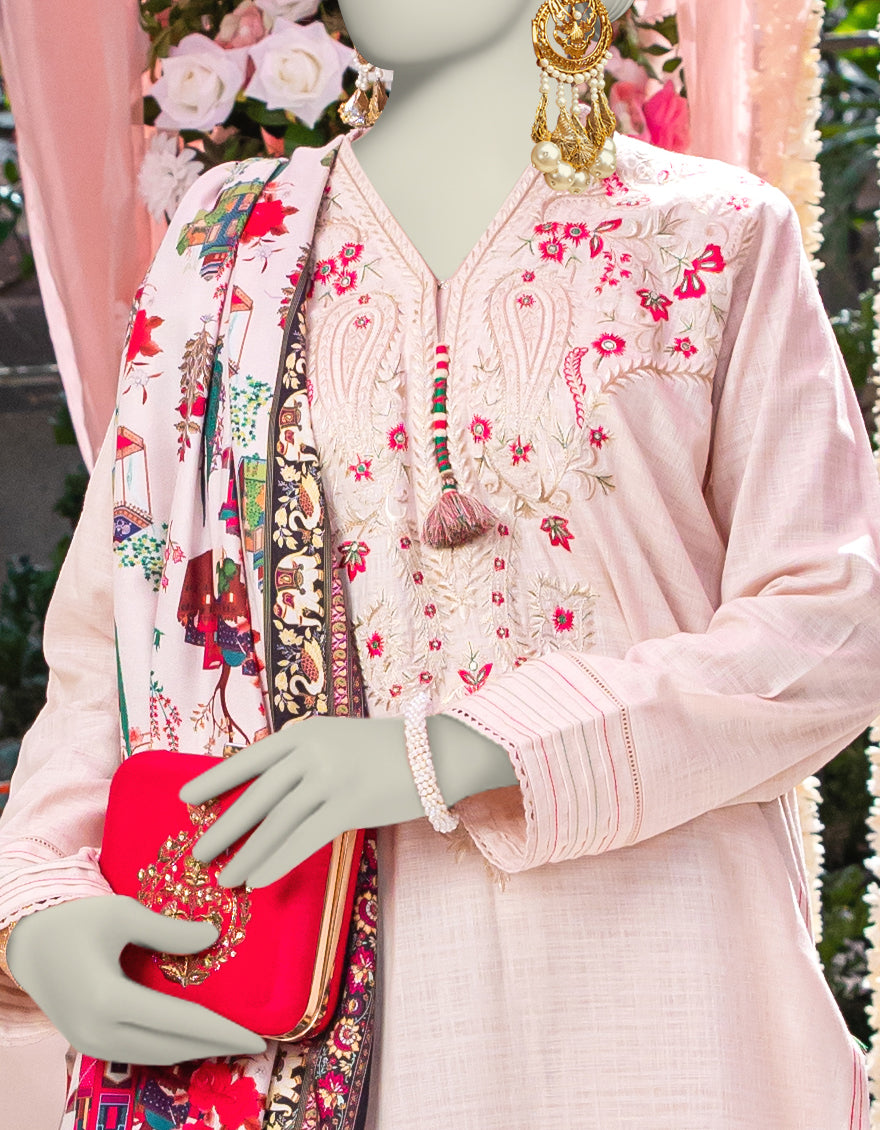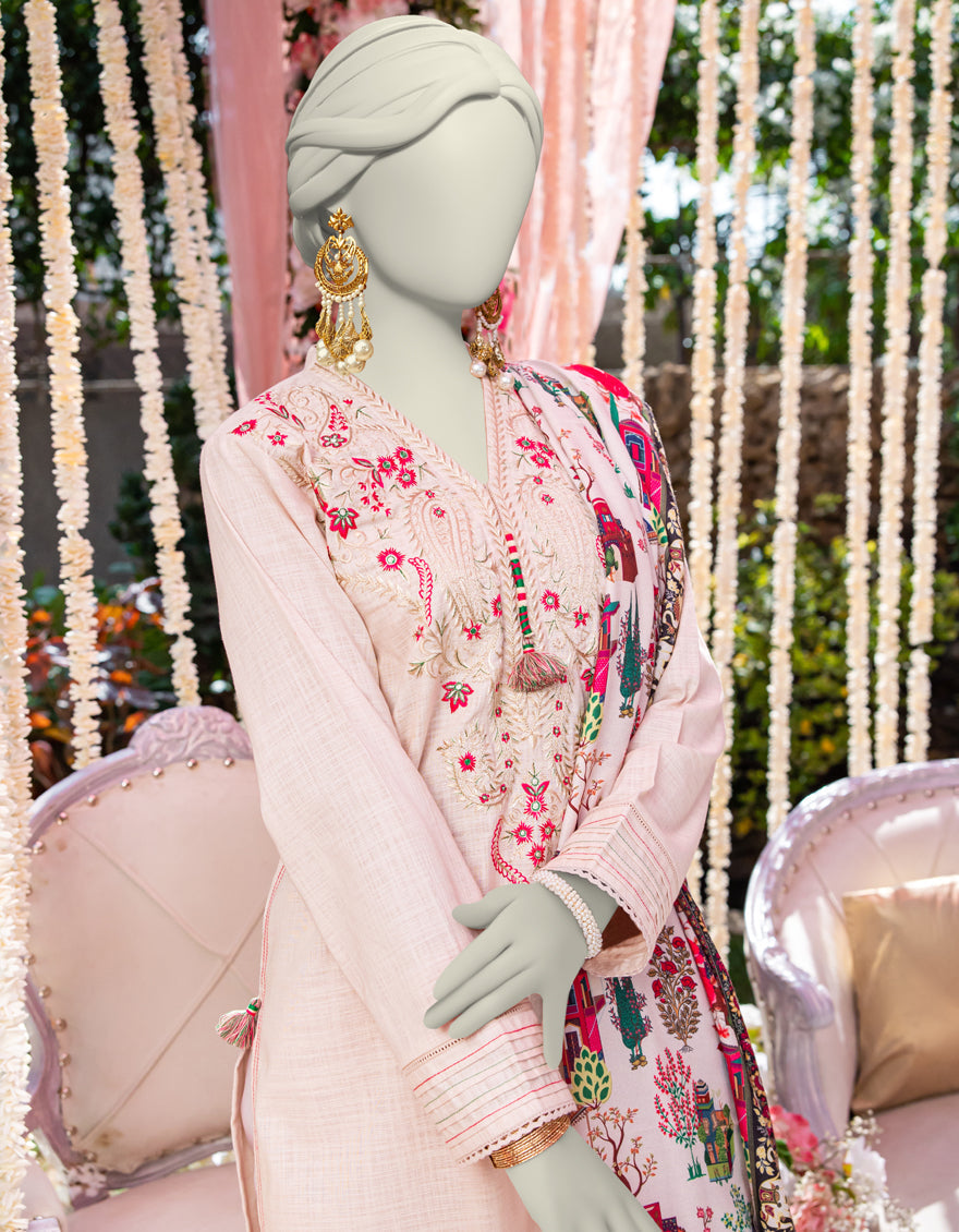 Collection: Embroidered Dobby Shirt And Digital Printed Shawl With Cambric Trouser