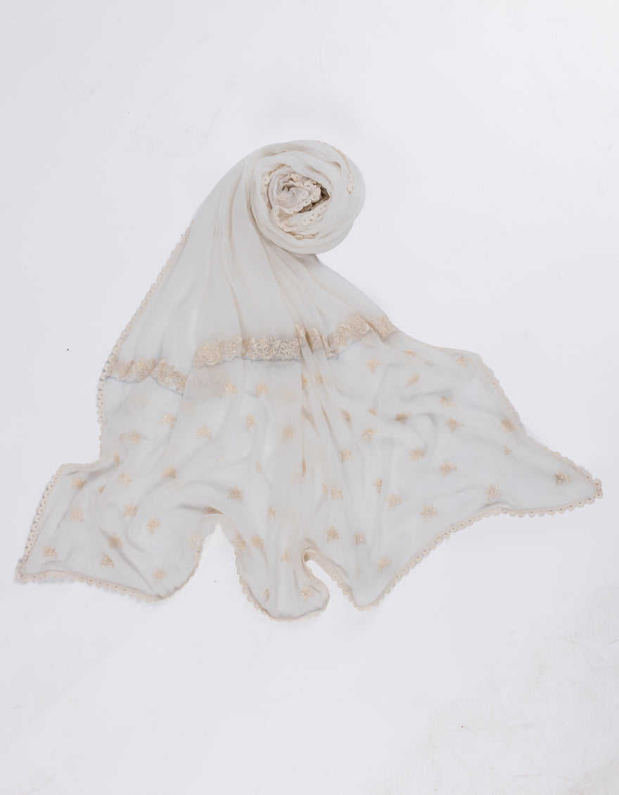 WHITE IMPURE CHIFFON DUPATTA | JLDP-S-25-2616 FB/EMB-01