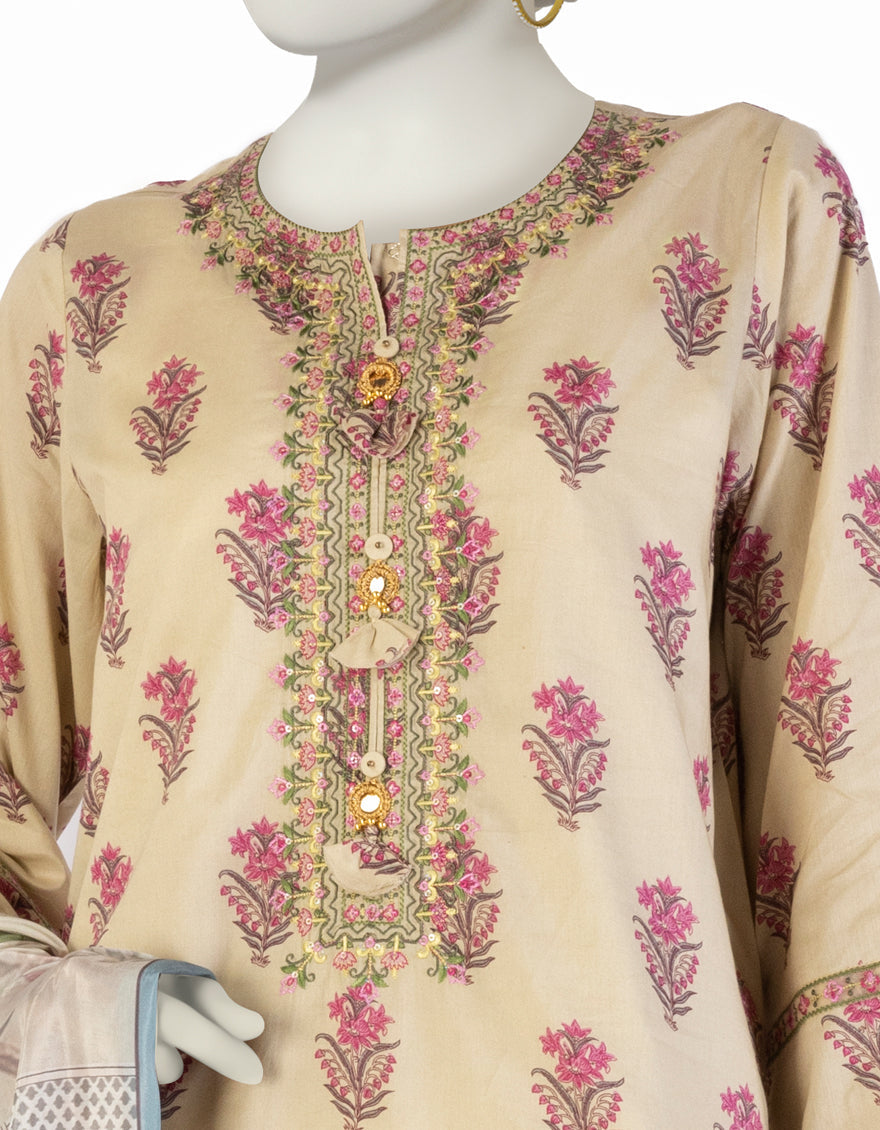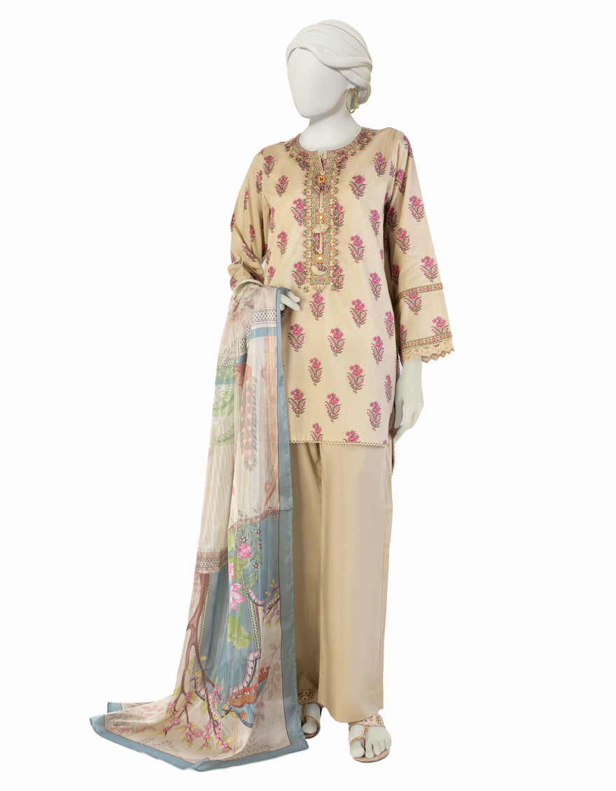 Collection: Embroidered & Printed Lawn Shirt - Dyed Lawn Trouser - Digital Printed Silk Dupatta
