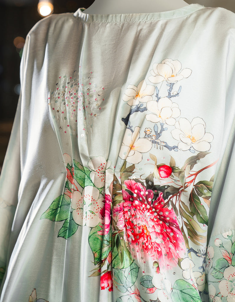 Collection: Embroidered & Printed Raw Silk Shirt - Dyed Raw Silk Trouser